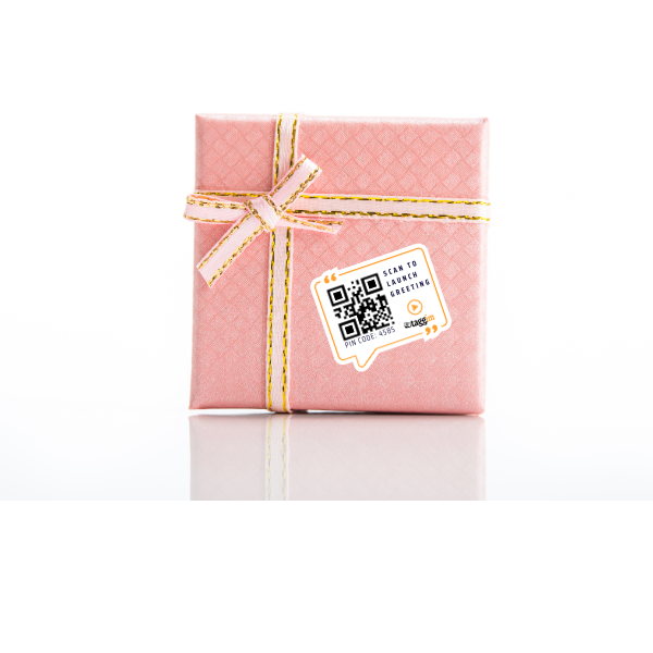 כדי להפעיל את מדבקות הברכה, סרוק את קוד ה-QR ואמת באמצעות ה-PIN שסופק. הקלט סרטון ברכה מותאם אישית, המצורף לתג.
